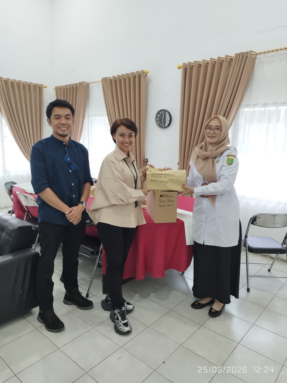 BUNTOK. Kepala Bidang Hubungan Industrial dan Jaminan Sosial Tenaga Kerja pada Dinas Transmigrasi dan Tenaga Kerja Kabupaten Barito Selatan IRMA MARLINA, S.HUT.,MM menerima penyerahan Kartu BPJS Ketenagakerjaan untuk penerima Bantuan Program Jaminan Sosial Ketenagakerjaan Bagi Pekerja Informal di Kabupaten Barito Selatan Tahun Anggaran 2026 dari perwakilan pihak BPJS Ketenagakerjaan Provinsi Kalimantan Tengah pada hari Rabu, 25 Maret 2026.